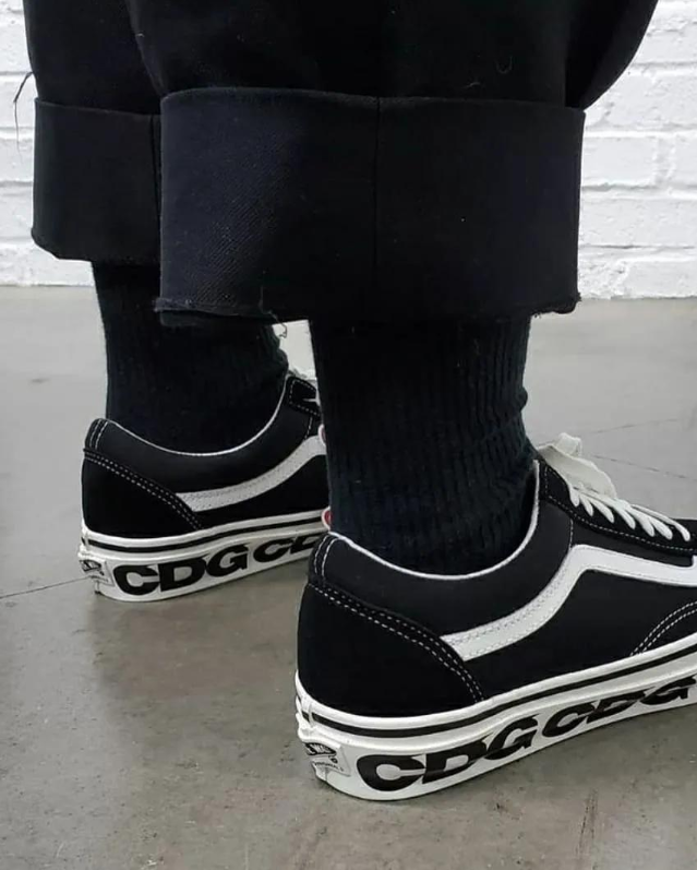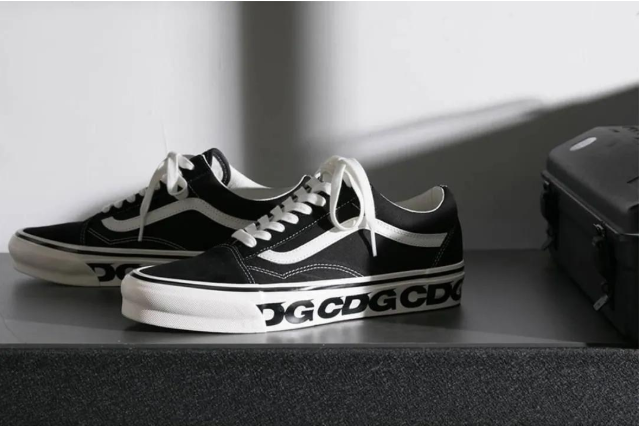 在沿用 Old Skool 经典黑白配色设计下,仅在白色中底印制上一排亮眼的 CDG 字样。