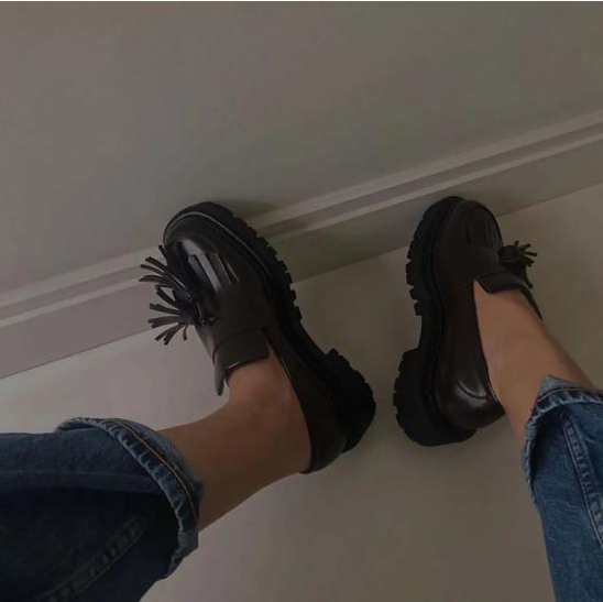 复古风小皮鞋的款式,当然也少不了乐福鞋。踩脚就能穿,极度舒适。搭配针织毛衣,外穿毛呢大衣,休闲与优雅被融合得淋漓尽致。