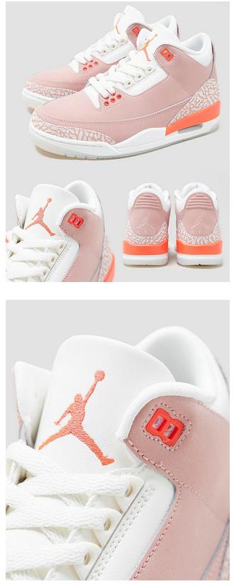 美乐淘潮牌汇获悉,从官图来看,这双 AJ3 对于粉色色调的把握可谓精准,外观塑造的相当精细又不会过度柔媚 or 艳丽,磨砂皮材料撑起了整体质感,后跟以及鞋舌两处的飞人 logo 点缀的恰到好处。