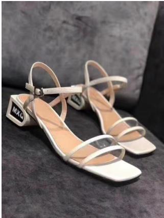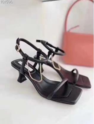 这一款露趾凉鞋有一种偏复古的感觉,小方跟的设计很有摩登女郎的气场,带着一丝成熟的魅力,直角方头的大鞋头形状会显得脚很纤细,腿型也很好地被修饰,金属链条装饰为这种庄重的气场增添了一丝放荡不羁,十分诱人。