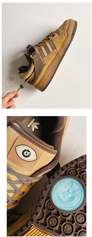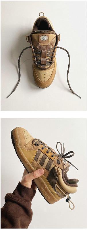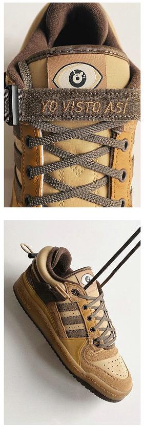 美乐淘潮牌汇获悉,这一次 Bad Bunny 挑选了 经典 Forum Low 板鞋进行设计,并以大地色调的深棕/米/棕褐搭配帆布、绒面革以及混合皮革等材质装扮。