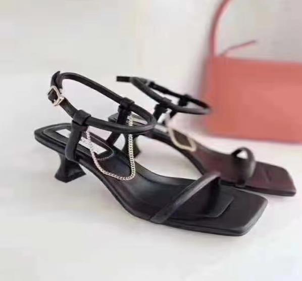 这款鞋子在市场上非常的受欢迎,因为它作为一款基础的高跟凉鞋款式,简单中又透露着一点小心机,无处不透露着时尚与前端。简单的纯黑色系看上去非常的大方简单,而且穿黑色的鞋子更能凸显出自己脚的白皙程度,无意中就提高了颜值。根部不是特别的高,因此日常穿也是毫无负担,不同担心自己的脚会不会累。简单的链条搭配给整双鞋增添了一点潮流性感的感觉,使本来简单的款式看上去非常的时尚,也给自己增添了明媚的色彩。