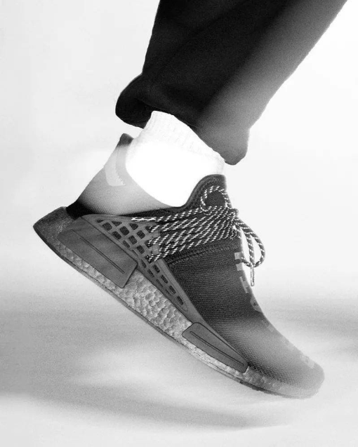全新的联名系列中最必不可少的 NMD Hu,鞋面采用大面积黑色装扮,与之前 Hu NMD 起飞的几款配色风格颇为相似。