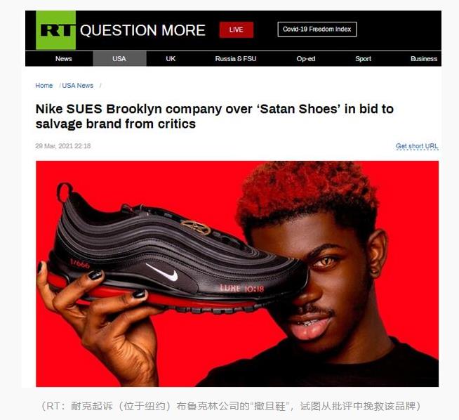 因“撒旦鞋”在美国被狂骂的,似乎真急了。据“今日俄罗斯”(RT)报道,当地时间3月29日,耐克公司以商标侵权、品牌来源不实以及不正当竞争等缘由对纽约的街头潮流品牌MSCHF提起诉讼。此前,MSCHF公司与美国说唱歌手利尔·纳斯·X一起推出了一款“撒旦鞋”:每只鞋的鞋底,都含有一滴人血……