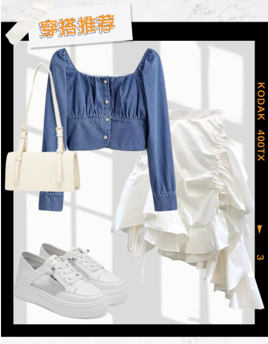 搭配不规则褶皱裙