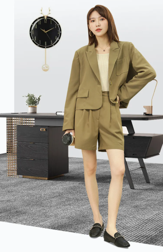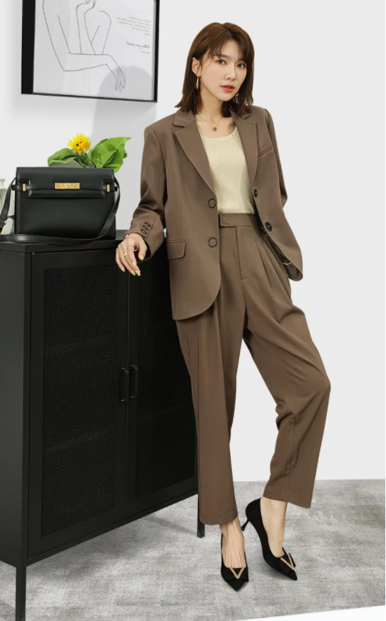 一套纯色西装和高跟鞋