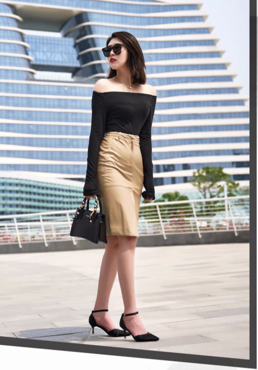 中开叉高腰皮裙