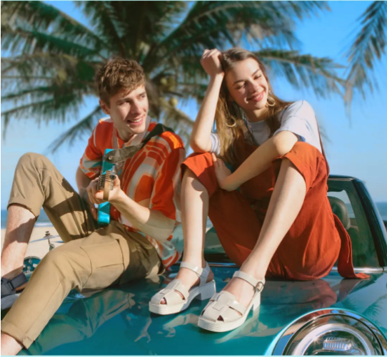 新的平底凉拖,和心爱的他,迎着海风踏浪,无