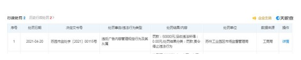 据天眼查信息显示,4月份阿迪达斯体育(中国)有限公司新增一条行政处罚,处罚事由为违反广告内容管理规定行为及其从属,处罚结果为罚款50000元,处罚单位为苏州工业园区市场监督管理局。