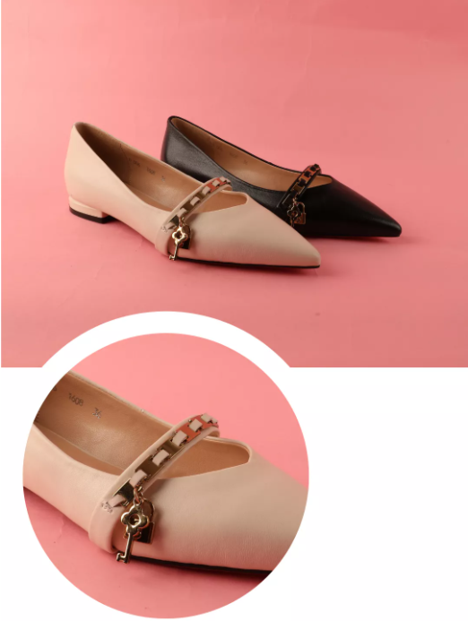 金属挂坠让鞋履干练中掺杂着柔情,适用于日常不显华丽,为简易生活点缀出精致感。
