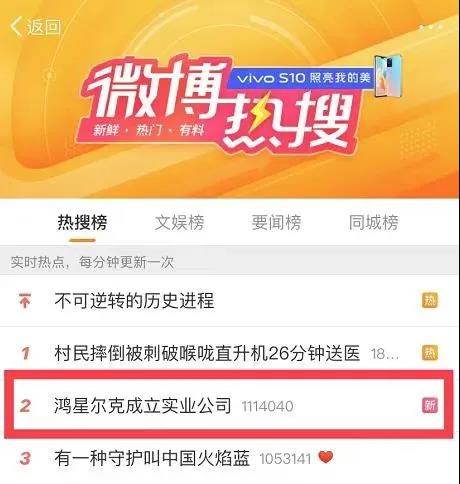鸿星尔克成立实业公司”冲上微博热搜