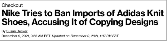 耐克表示,它“被迫提起诉讼,以捍卫其在创新方面的投资,通过阻止阿迪达斯未经授权的使用来保护其技术。”