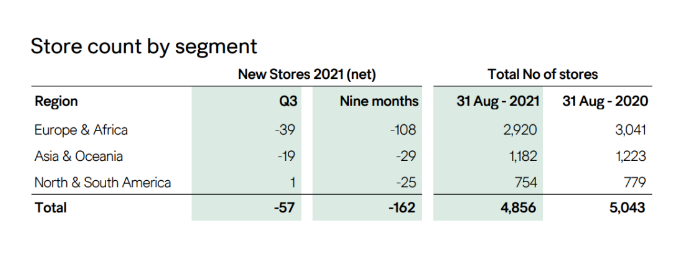资料来源:H&M Q3 财报 统计时间:2021.6.1-2021.8.31