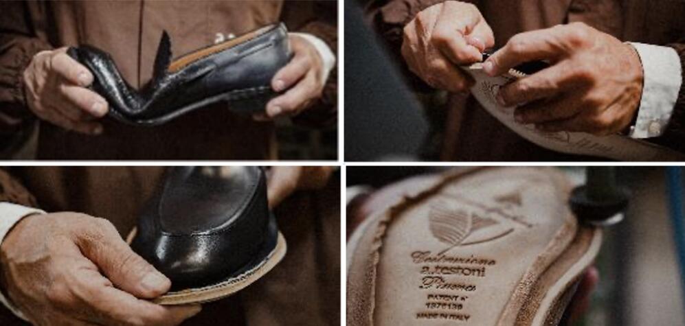 Piuma Rapid专利缝合工法:是AMEDEO TESTONI最具代表性的工艺,超200道手工工序,重点是独有的接缝技法,打破传统鞋面与鞋底缝合方式,将鞋面边缘外延与鞋底直接缝合,使鞋履结构更具灵活性,且鞋内没有接缝与针孔,最大程度地确保了舒适度,而且透气性极佳,可隔绝热、冷和潮湿。而每一双使用Piuma Rapid工艺手工缝制的鞋款,鞋底都会烙印上羽毛图案标识,以此打造、彰显珍贵和独特的意式鞋履。