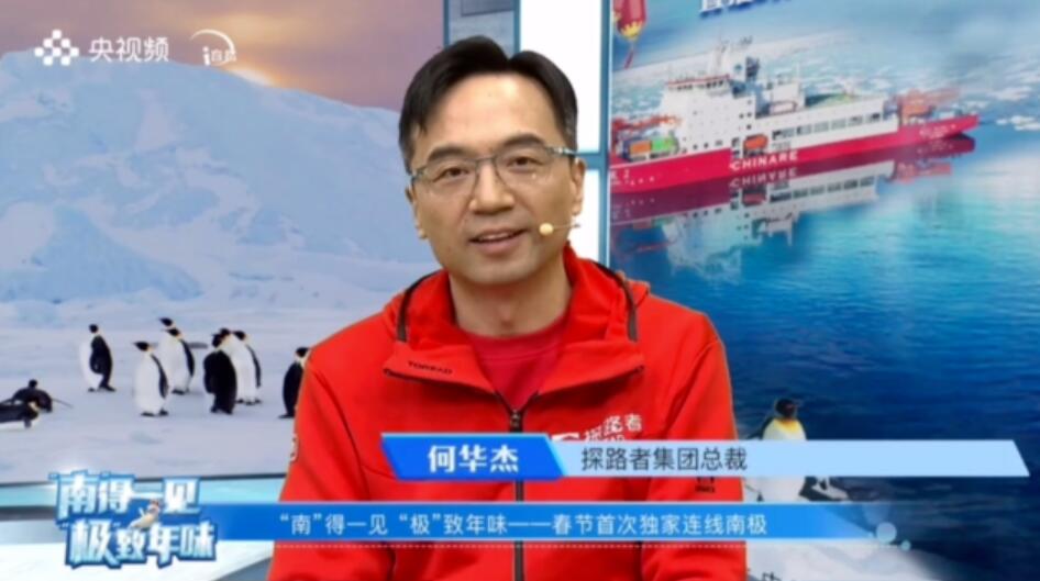 探路者集团总裁何华杰参与连线南极节目(图片源自央视频直播)