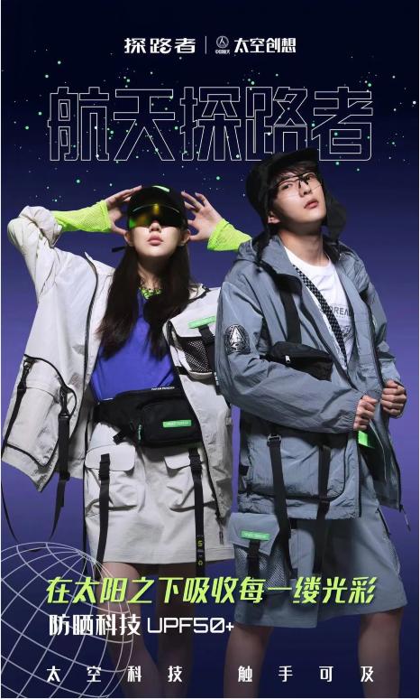 在此次与“中国航天·太空创想”全新的跨界合作中,探路者以“太空机能玩家”之名推出了包括皮肤衣、T恤、马甲、工装裤、短裤等在内的日常户外单品,再次定义航天科技新国潮。该系列产品加入反光太空级设计、TIEF太空级科技等元素,既带给了消费者新鲜感,也让大众更了解航天文化。接下来,探路者还将推出多款防晒服和精致露营装备,满足都市群体既想要融入自然又想要精致生活的意趣。