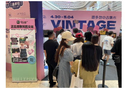 今年五一期间,“喜多包中古集市”联动专业潮流闲置正品交易平台95分App在深圳卓悦中心,举办深圳大型中古箱包集市,集结了超过80家中古店、万余件二手奢侈品尖货。作为展会线上联动方,95分App同期举办“五一FUN心购”主题活动,通过官方直播、发放潮流补贴等形式,为年轻消费者们带来一场中古奢品集中展示。