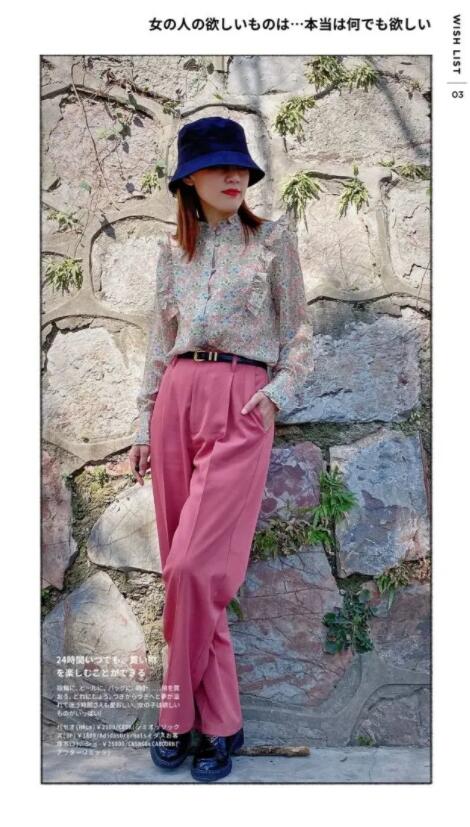 下装的粉色西裤,宽松阔腿的版型具有十足个性;搭配一双乐福鞋,让拖沓的裤腿有厚度的承接;戴上渔夫帽,一身明亮的装扮必定在人群中脱颖而出。