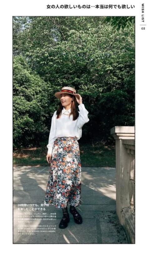 夏天少不了碎花裙,团团簇簇的碎花圆满了画面,朵朵小花都在召唤你的视线;上穿白色衬衣,与碎花的交织搭配符合对夏天的美好期待。