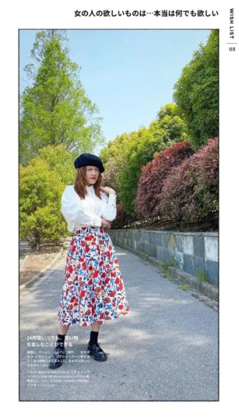 白色衬衣和黑色鞋子,颜色对比明显,而用碎花裙作为两者的过渡,就完整的衔接了由浅而深的变化,Nice~