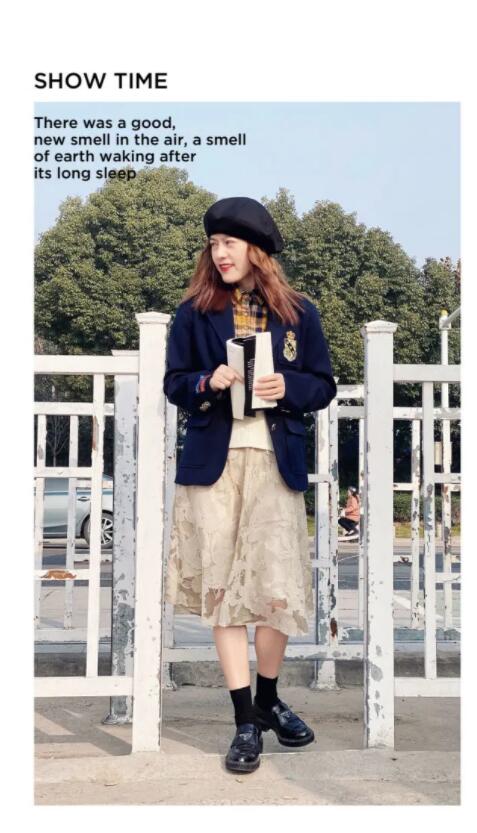 外搭一件西服外套,配上贝雷帽,浅浅复制一下魔法学院风。