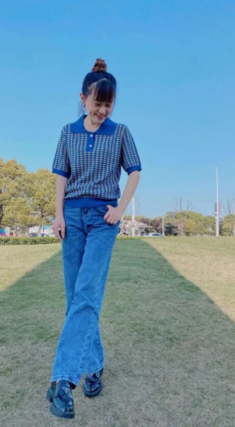 一件复古编织的Polo衫,穿起来显得精巧细腻;下身一条男朋友牛仔裤,是夏日首选的宽松版型。