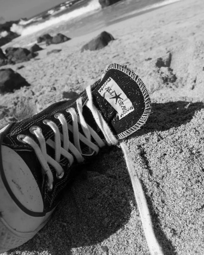 可以看出朴山多拉此次上脚的是 Stüssy x Converse 联名系列中的Chuck 70,双方以 Converse 90 年代就曾推出的麻布质料 Chucks 鞋款为设计灵感。