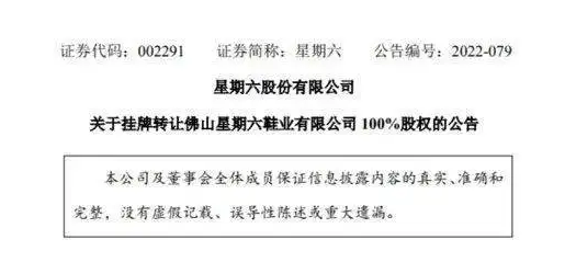 星期六拟挂牌转让星期六鞋业100%股权