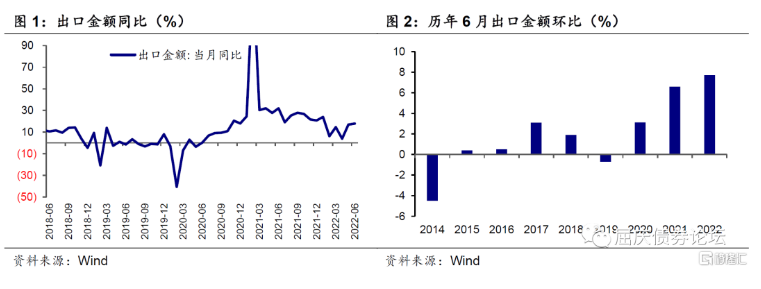 6月出口同比17.3%,再次超出市场预期;环比7.7%,显著高于季节性。我们理解,一是疫情期间部分积压的出口订单延后至5-6月,6月进入全面复工复产阶段,产能利用率较5月进一步回升,带动订单的释放。6月中下旬,八大枢纽港口集装箱吞吐量当旬同比分别达11.1%、5%。二是外需的回落并不如市场预期那么快,以海外主要经济体PMI回落来代表外需走弱的判断较为粗放,加息导致全球经济放缓的逻辑又偏长期,事实上国外一些结构性需求的抬升持续支撑我国的出口。三是订单转移至东南亚国家的迹象也不明显,中国制造业优势所配套的基础设施和完整产业链短期很难被东南亚等国家超越,疫情好转后部分订单依旧回流中国。