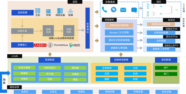 自动化:运维作业和变更依赖脚本或手工执行,费时、质量不可控;重大故障,应急能力偏弱;