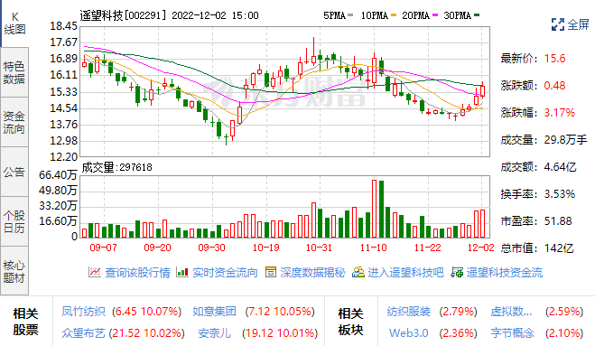 11月30日晚间,星期六发布公告称,从12月1日开始,公司正式更名佛山遥望科技股份有限公司,证券简称变更为遥望科技,公司证券代码“002291”则保持不变。
