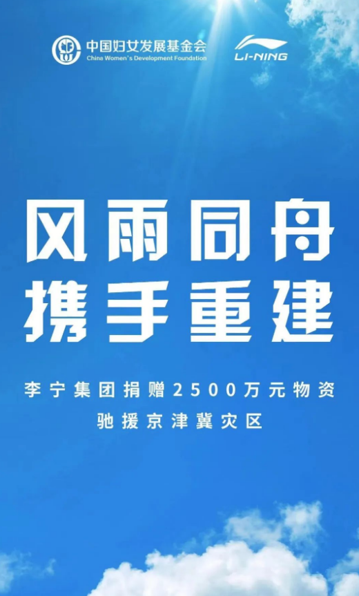 李宁集团为京津冀灾区捐赠2500万元物资