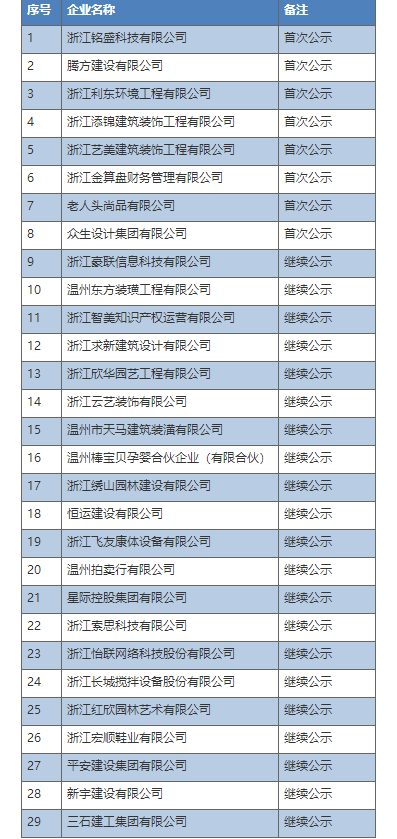 中国质量新闻网讯 近日,浙江省AAA级“守合同重信用”企业公示名单公布,温州市鹿城区共有29家企业榜上有名,其中首次公示企业8家、继续公示企业21家,数量位居温州各区县前列。上榜企业公示期2年,实行动态管理,接受社会监督。