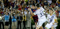 【中国鞋网-赛事追踪】北京时间7月22日11:00(美国西部当地时间21日20:00),2015/16赛季巴塞罗那季前首场热身赛在玫瑰碗球场展开角逐,巴萨2比1取胜洛杉矶银河,苏亚雷斯同杰拉德同场竞技,苏神打破僵局,塞尔吉-罗贝托扩大比分,汤米-迈耶补时挽回颜面。 参加美洲杯赛事的梅西和内马尔并未进入比...