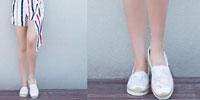 【-鞋情话意】这么热的天气,穿什么裤子更凉快,更时髦呢?选择夏季流行穿破洞九分裤,随意搭配平底鞋轻松可以有显高的效果,学学吧。 +薄荷绿平底鞋 搭配1、夏季流行穿破洞九分裤,可以很好的露出你的脚踝肌肤,达到拉长腿型的效果,轻松就达到显高的效果了,即使搭配薄荷绿的平底鞋,照样显高的...