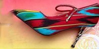 【-鞋材资讯】这几天,布再那普古丽·依敏的鞋店又有新款上市,不仅有艾德莱斯的高跟鞋,还有艾德莱斯样式的钱包、T恤、裙子,“我一直有一个梦想,就是把自己喜欢的艾德莱斯元素运用到自己做的鞋子里,这个梦想不仅实现了,还把艾德莱斯元素运用到了T恤、钱包和裙子上……” 布再那普古丽·依敏来自和田地...