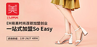 【-品牌资讯】只要你愿意走出第一步,创业什么时候开始都不会晚。经过多年的发展,鞋行业能够成为众多创业者们的首选领域,是因为其拥有完全竞争的市场状态和非常广阔的市场环境等特性。正是在这样一个优质的创业背景下,鞋行业创业自然成为现在无数创业投资者们最好的首选。2019年,EM易美时尚品牌连锁...