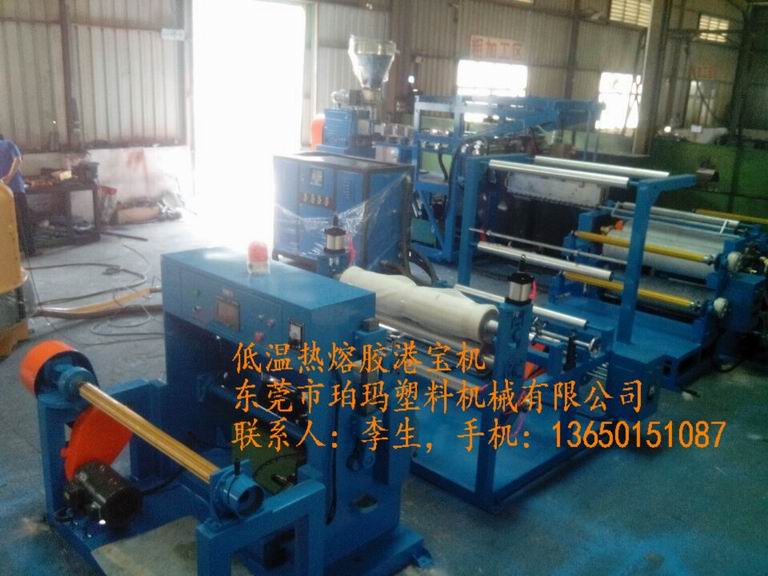 港宝机,港宝机器,热熔胶港宝,低温热熔胶,港宝胶片机 ★该机组主要由主机、换网器、模具、压片机、贴合装置、输送台、牵引机、收卷机或者切断机等组成; ★减速箱体采用铸钢件,齿轮采用合金钢并经磨齿处理,箱体内各润滑点均采用强制润滑方式,润滑油配有高效水冷却系统。 ★螺杆材料采用38CrMOA1A优质氮化钢,并经氮化处理, 表面喷合金。 ★机筒材料采用38CrMOA1A优质氮化钢,并经氮化处理,表面喷合金。 ★本机组主要适用于:热熔胶鞋材、热熔胶港宝,点胶布,定型布鞋材领域 ★本厂凭借多年来对热熔胶产品生产及低温热熔胶港宝机制造的研究和探索,借鉴德国、台湾先进技术,并不断勇于改进创新,一直引领行业标准。做出的设备质量保证、实用性强,直接安装就能投产,机器使用寿命长,售后服务可靠,而且我们有做产品的全套技术配方,对于我们的港宝机客户,我们承诺包配方、包培训,为客户提供充分的技术支持,帮您降低生产成本,在市场上更具竞争优势。 中国是世界最大的鞋类制造基地,今后中国制鞋业的发展必然要从低端市场走向中高端市场,产业升级换代是必走之路。所以一方面对鞋材需求会不断增加,但同时对环保、节能、附加值更高的鞋材需求量会更大。热熔胶片(港宝)做为制鞋最重要的材料之一,需求量巨大。传统的皮浆港宝和化学片港宝,采用浸水软化法和泡溶剂(甲苯)软化法,但是产品较厚,成型时间长,弹性非常差;另外操作工序多,费时费力,不符合经济效益。而且甲笨有身体有害,对皮肤、粘膜有刺激性,对中枢神经系统有麻醉作用。所以传统的港宝属于既不环保,又不经济的落后淘汰产品。近两年面市的低温热熔胶片是传统港宝的最佳替代品。 东莞市珀玛塑料机械有限公司是中国内地HENAN塑机集团公司与澳洲TIMAPARK公司合作,在中国广东创建的一家高起点的塑料机械设备厂,主要以塑料挤出设备生产线为主,本企业本着高技术设计、高标准的质量,愿为世界各地朋友服务!主导产品是:各种规格的PP、PE、PS、ABS、EVA等塑料片、板材设备;各种规格的PP、PE、PEVA、EVA等流延膜设备;专业制造港宝机器、低温热熔胶港宝机和贴合设备等,珀玛塑机地处地理优越交通便利的东莞市道滘镇昌平工业区,距广深高速道滘出口处500米左右,在东莞市汽车总站附近,明轩大酒店斜对面!欢迎各方客户来我公司咨询洽谈! 销售负责人:李生 电话:13650151087 Web: 传真:0769-88311906