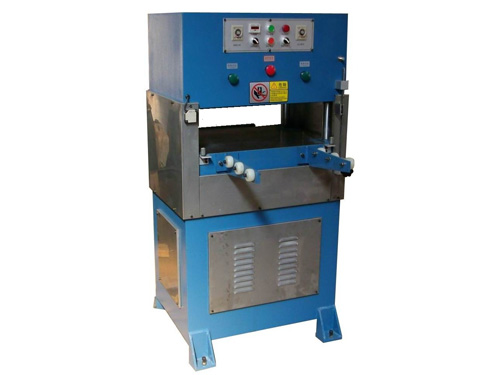 小型液压压四柱式裁断机 用途与特点 本机适用于利用成型刀模对皮革、塑料、纸板、织造物等材料的一层或多层的成型裁断,是制鞋、箱包、服装,汽车、工艺品、包装、电子等行业的理想裁断设备。 1. 操作省力、简单、故障率低、裁断力强、裁断速度快。 2. 双油缸、精密四柱自动平衡连杆结构,保证每一个裁断位置深度完全相同。 3. 裁断板下压接触裁刀时自动慢切,使裁断料最上层与最下层没有尺寸误差。 4. 双手操作,安全性高技术参数 最大冲裁力Maximum momentum 200KN 250KN/ 冲裁速度Seissor speed 0.12m/s 0.11m/s 行程调节范围Stroke adjustment 0—120mm 上下压板间距离Range between the working tables 60—160mm 上压板尺寸Size of the upper pressing board 600×500mm 600×600mm 下工作台面尺寸Size of the pressing board 600×510mm 600×610mm 电机功率Motor power 1.1KW 1.1KW 外形尺寸Overall dimension 1000×800×1320mm 1000×900×1320mm 整机重量Total weight 800kg 850kg