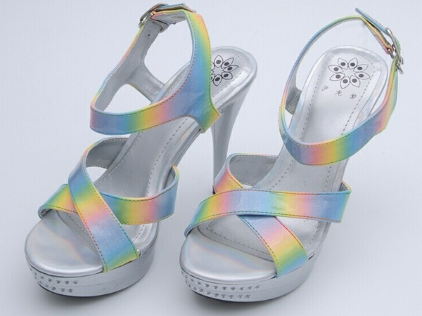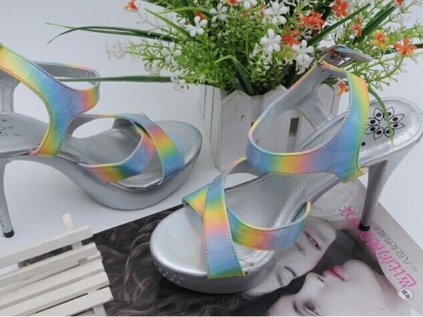 【风格】欧美 时尚【内里材质】:PU 【帮面材质】:进口特殊PU 【皮质特征】:五彩 【鞋底材质】:优质防滑橡胶底【防水台】2.5cm 【鞋头】:鱼嘴 凉鞋【跟高】:高跟(11cm) 【鞋长】:24cm 【鞋底宽】:7cm 【鞋跟形状】:细跟【适合场合】:约会、宴会、时尚【制作工艺】:环保胶粘鞋【流行元素】: 亮片、防水台【图案】:纯色【适合季节】:春夏【颜色分类】:五彩色备注:以上数据由36码测得/每增减一个尺码会增减0.5CM