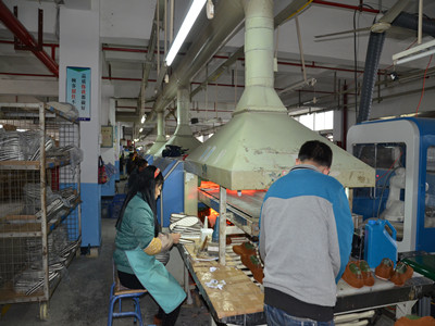 黑金刚鞋底喷胶系统HJG-PD-G2 鞋底喷胶系统产品概述:人机界面,操作简单、便捷,采用3D视觉定位系统,自动识别、自动生成喷胶轨迹,应用六轴机器人非接触式喷枪成熟稳定、高速度、高精度地沿着预定的轨迹完成鞋底喷胶过程,喷胶轨迹的自动生成是实现鞋底喷胶工艺自动化的关键技术之一。机器结构隔绝粘胶剂挥发的有毒气体对操作人员健康的威胁。参数介绍:型号 HJG-PD-G2 定位系统 3D视觉定位总电源 8kw/220v 16kw/380v 气源要求 0.4-0.6mpa(清洁空气)定位速度 230mm/s(鞋底) 组成部分 智能机器人、激光扫描仪、工业电脑、喷胶系统、输送带、电气控制系统等喷胶时间 6s(鞋底喷胶) 注:根据鞋码大小、喷涂时间略有不同喷胶精度 ±0.2mm 机械手臂 HJG-PD-G1:单机器人工作台 HJG-PD-G2:双机器人工作台 HJG-PD-G2S:双机器人串联作业产品优势: 1.应用简便:适用于不同规格、不同型号、不同尺寸的鞋底 2.速度更快:6~8秒完成鞋底扫描和喷胶,优于国内外同类产品 3.质量稳定:喷胶轨迹预定、胶水用量固定,喷胶质量大幅提高 4.高性价比:相同性能,售价仅为欧洲品牌同类型设备的1/3 5.减少损耗:胶水得到充分利用不浪费,减少人体与胶水接触,健康环保优势对比:项目 传统生产 机器人智能作业效益比对 人工:每条线约12名刷胶工胶水:0.9元/每双 无需刷胶工人,只需要普工操作即可的自动化车间,机械手臂自动喷胶,喷涂精准,减少胶水浪费 质量对比 返修率:约15% 更好的确保品质一致性,返修率约5% 环保效应 长期近距离接触胶水 严重影响人体健康 机械作业,胶水无直接接触,不伤害人体