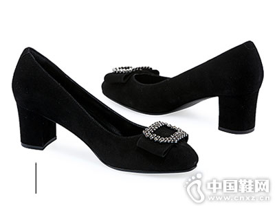 哈森2018秋新品纯色羊反绒精致水钻通勤低跟圆头浅口单鞋,,哈森中国有限公司,合作,供求信息,中国鞋网