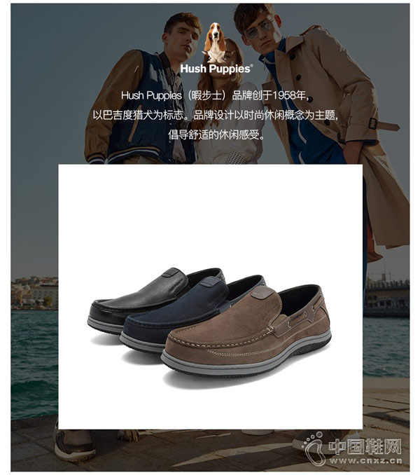Hush Puppies(暇步士)品牌1958年由美国Wolverine Family公司创立。启用著名的巴吉度猎犬做标志,以其亲和、忠实的个性,圆润、可爱的形象令人印象深刻。采用纯天然和高科技原料,以舒适、自然之人文精神为设计理念,加入时尚元素的高品质Hush Puppies系列休闲产品也迎得了世界各地人们的喜爱。销售网点遍布97个国家。