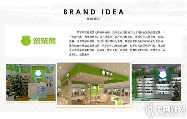 笨笨熊实施差异化的品牌战略,以高位支点致力于少儿时尚生活事业的发展,以“与爱同爱”为品牌精神,以“玩出色”为产品风格定位,演绎少年儿童有爱、自由、纯真、活力的缤纷童年,现已形成以童鞋为主导,辅以各类特色配件的相关配套系列。笨笨熊充分地挖掘品牌优势,呵护少年儿童健康成长,赋予少儿无限快乐时光,使品牌也逐步地享誉童鞋市场。善战者,求之于势。笨笨熊,创有魅力的品牌,以精立业,以质取胜,慧赢未来。