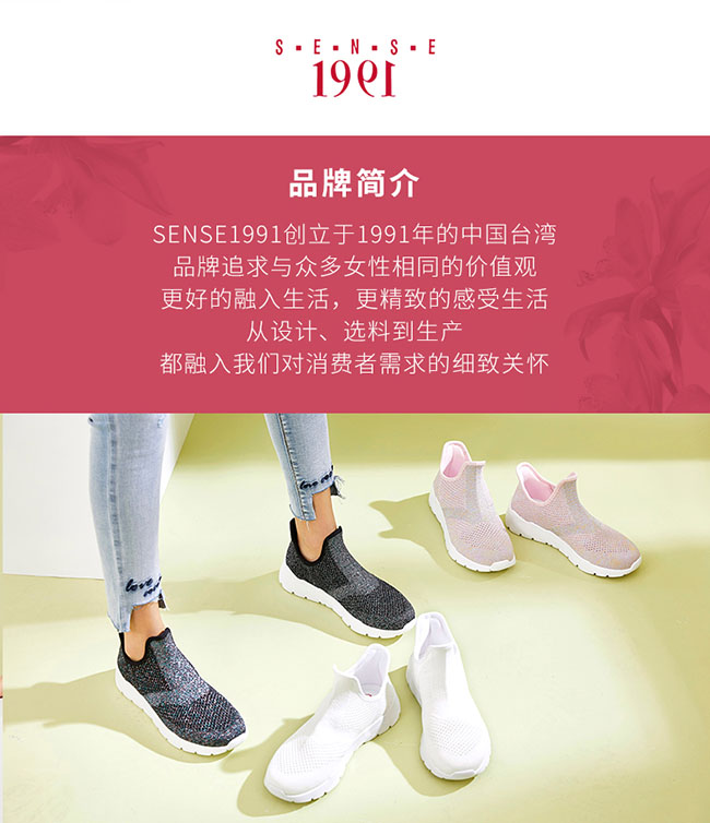 品牌风格- 彰显成熟女性妩媚特质 设计品味- 自然、优雅、简洁、前卫、偏中性化 市场定位- 以25岁以的上都会区上班为主力诉求,强调敏锐流行感,与21世纪女性的高度自信 SENSE1991创造者如是说:我希望SENSE1991不只是名牌女鞋的代名词,更是一种时尚生活的态度,一向对流行十分敏感,如何找到摩登时髦与高雅品味之间最美的交集,一直是我思考的焦点,当初投入女鞋市场,便是执着这个单纯的念头,企图开拓女性消费者对鞋子品味的全新视野,每次的开发设计,总是想藉着作品释放最亮丽的流行光华,一首好歌,会让您沉吟;一出好戏,会让您动容;而选对一双好鞋,更会让您步履轻盈,气质出众,穿上流行,走出品味,步履之间就踏上了米兰时尚的伸展台,漫步巴黎左岸的迷人街道,选择一双鞋,其实是选择一面心情魔镜,选对了鞋,你就是世界上最美丽动人的时尚女性。