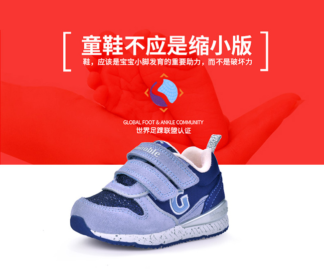 基诺浦品牌理念:基诺浦以科学研究为基础,关爱为重心为理念,始终坚持童鞋不应是缩小版 理念。