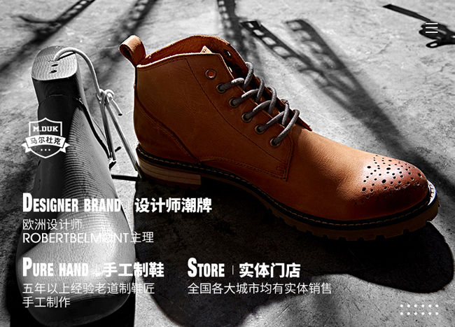马尔杜克男鞋集设计、生产、销售为一体的商贸企业公司注册资金200万元。总部位于江西省都昌县,现有北京、福建、广东等生产基地。代理品牌“想川"面向于25-39岁的城市小资、都市白领、时尚男性,主张“素雅而简洁,高贵而有内涵,追求时尚,享受时尚”的设计风格,让生活变得更加精彩。秉承“以人为本、诚信为本、和谐共荣、互惠互利”的经营理念,优良的品质深受广大客户的青睐。