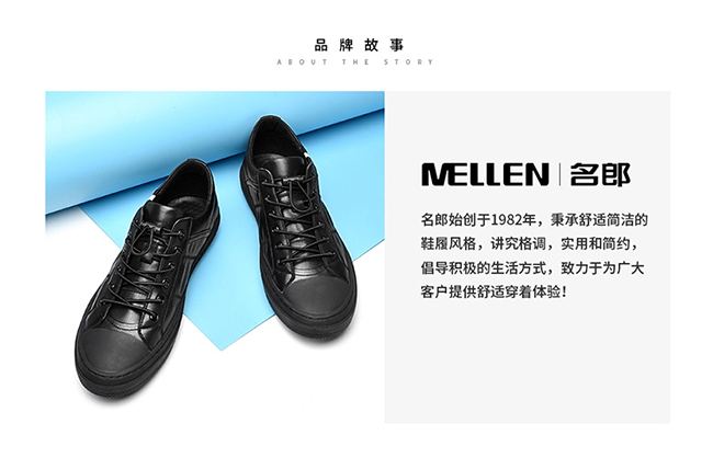 MELLEN沿袭法式传统制鞋工艺,汲取现代技术精华,用精湛的工艺与优质的面料打造每一双适足之履,用经典演绎一段生活传奇。 MELLEN休闲男鞋成立30多年以来,得益于正确的发展战略与精益求精的优良品质,品牌殊荣不断,市场占有率、品牌知名度、品牌美誉度日益提升,为广大消费者所喜爱。2014年,中华人民共和国工商行政管理总局认定MELLEN品牌商标为“中国驰名商标”,自此品牌得到又一次质的飞跃。