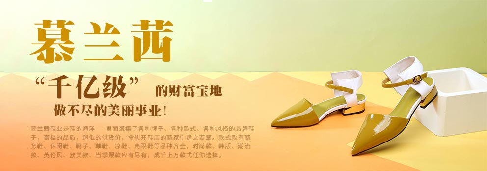 慕兰茜是广州达力鞋业发展有限公司旗下品牌女鞋,主营真皮时尚女鞋,穿着舒适款式多样紧跟时尚潮流,深受广大时尚达人的喜爱,并以较高的信誉,时尚多变的款式及雄厚的经济实力,在同行业中,独树一帜,并且在国家的改革开放政策和社会各界的关心与支持帮助下,慕兰茜时尚女鞋业务发展突飞猛进,在同行业中,具有竞争力的品牌之一。