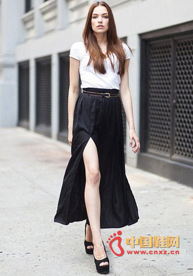 长裙搭配很常见,要在常规中寻求突破,细节很重要,高开叉设计的长裙,性感而帅气,既有长裙的飘逸,又有短裙的清爽。